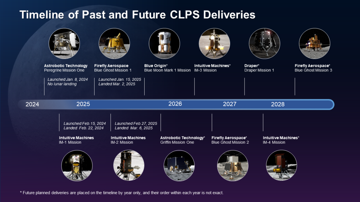 This program was designed for the rapid acquisition of lunar delivery services from commercial vendors, speeding up what had been a slow, bureaucratic process. So far, NASA has awarded 11 lunar deliveries to five CLPS vendors. Of these, 4 deliveries went to Intuitive Machines.