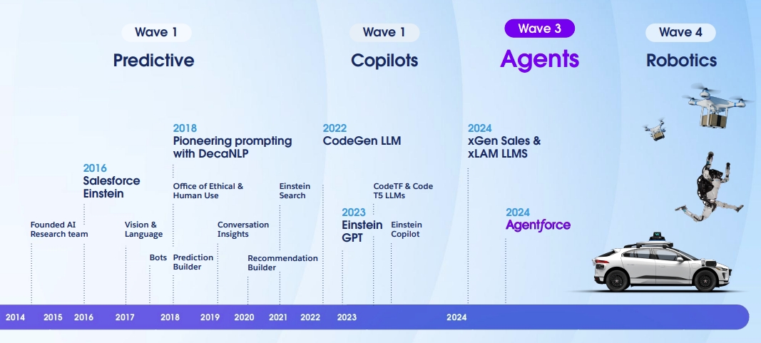 In 2024, the company leveraged the progress in AI technology to release Agentforce, an AI agent platform using a series of agentic tools to automate more of the sales process.